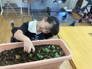 2025年9月24日 / 最終更新日時 : 2025年10月3日 tomishi1 小学部 学習の様子6(小学部) 小学部2組(2年生)では、生活の授業で野菜を育てています。現在は、1学期に枯らしてしまった、はつか大根に再挑戦しています。収穫を楽しみに、毎日、小まめに水やりを頑張っています。