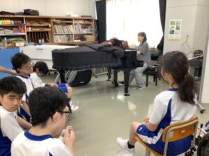 2025年9月24日 / 最終更新日時 : 2025年10月3日 tomishi1 中学部 学習の様子6(中学部) 中学部A・B・C・E組の音楽では、ベートーベン交響曲第5番「運命」を学習しています。曲を鑑賞したり、有名なフレーズ「ジャジャジャジャーン」に合わせてシンバルを「バシャーン」と鳴らしたりして、壮大な曲調や緊迫感のあるメロディーを味わいました。また、教師のピアノ演奏を鑑賞して楽器を弾くことの楽しさ、面白さを感じました。