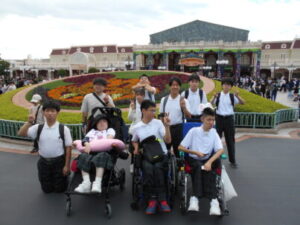 2日目は、東京ディズニーランドに行き、グループに分かれてアトラクションやショーを楽しみました。園内は大勢の人がいて移動するのも大変な時間帯がありましたが、事前学習でグループごとにコースを考え、当日はディスアビリティアクセスサービスを活用して、ディズニーランドを満喫することができました。