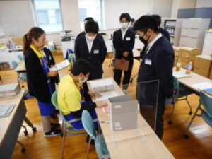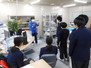 高等部1年2組と2年2組の12名が、特例子会社2社の見学に出掛けました。実際に現場での仕事について丁寧に説明していただいたり、質疑応答では、入社してよかったことや社会人として気を付けていることなど、生徒からの具体的な質問に答えていただいたりして、進路について考えるよい機会となりました。