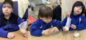 生活単元学習では、春から育ててきたラベンダーやローズマリーなどのハーブを収穫しました。 乾燥させたハーブを使って、バスボムを作っています。ハーブを細かくちぎったり、材料を混ぜ合わせたりするたびに、教室中に爽やかな香りが広がり、完成したバスボムを入れた足湯にみんなで入るのを楽しみにしています。